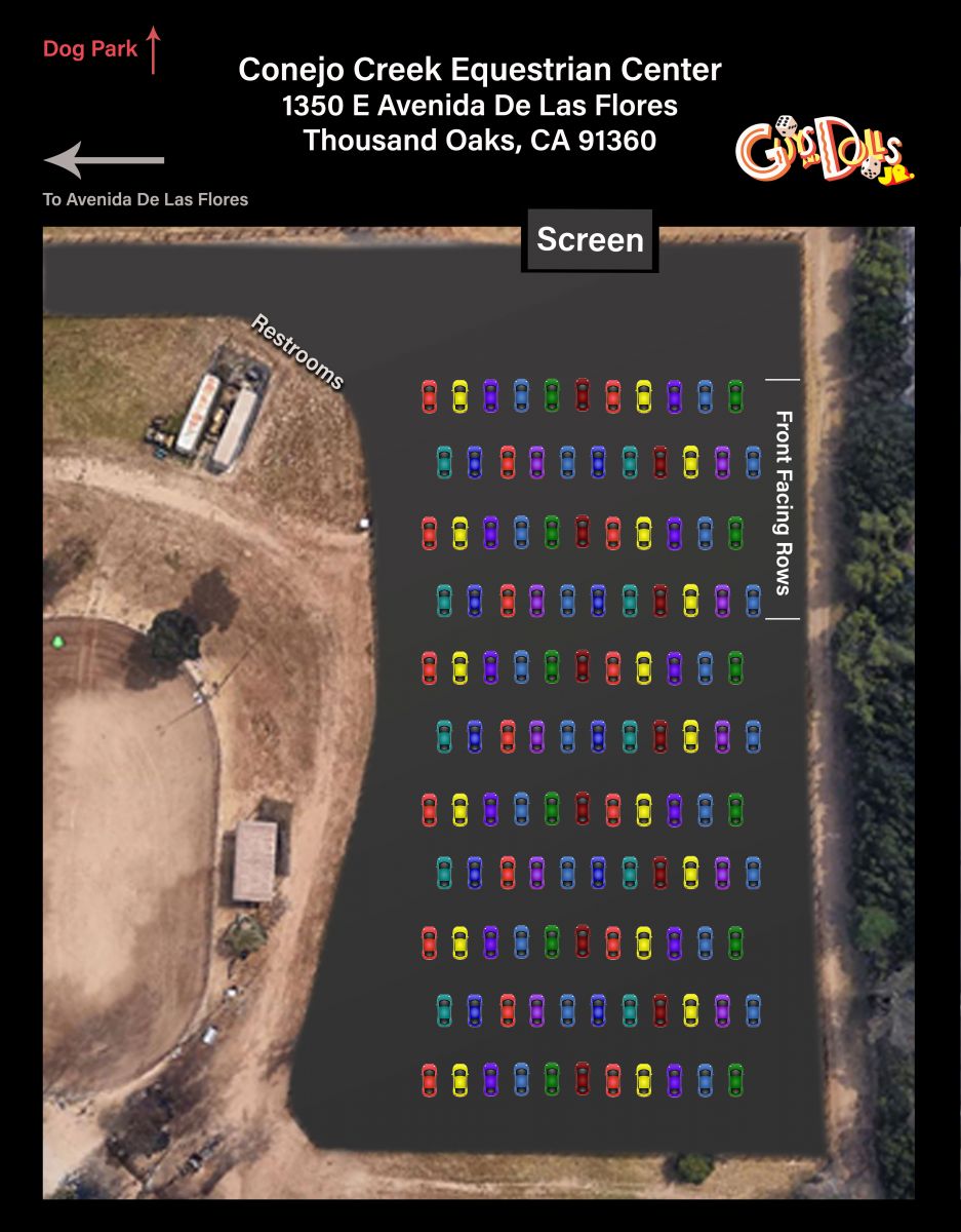 Drive-In Parking Chart for Guys and Dolls, Jr. at the Conejo Creek Equestrian Center 1350 E Avenida De Las Flores, Thouand Oaks, CA 91360